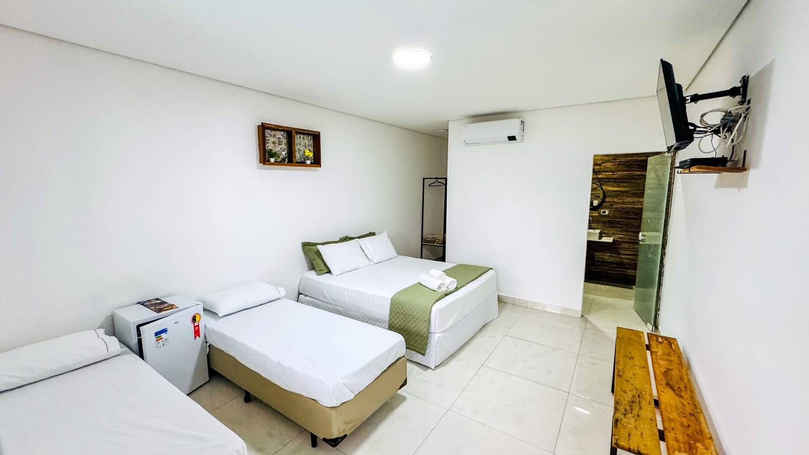 As três suítes da categoria Superior Quádruplo acomodam até 04 pessoas em uma cama casal + duas camas solteiro, e são completas para sua comodidade.